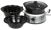 This is the best slow cooker I've ever used. Having three sizes of crocks let us cook just for the two of us or for the whole family when they're home. And they stack inside each other for storage so they take up little room. The crocks and heating unit wipe up easily. The simple manual controls are all we need. I make a large crock of chili or soup using a liner serve and then freeze the remaining portion in the liner. After a few weeks I take out the chili in the liner put it in the smaller crock and heat it through in the slow cooker. I saw a version of this slow cooker in Target for $59.99 but all the crocks were tan; this is much prettier. You can't go wrong with these and you'll be the envy at your next potluck.